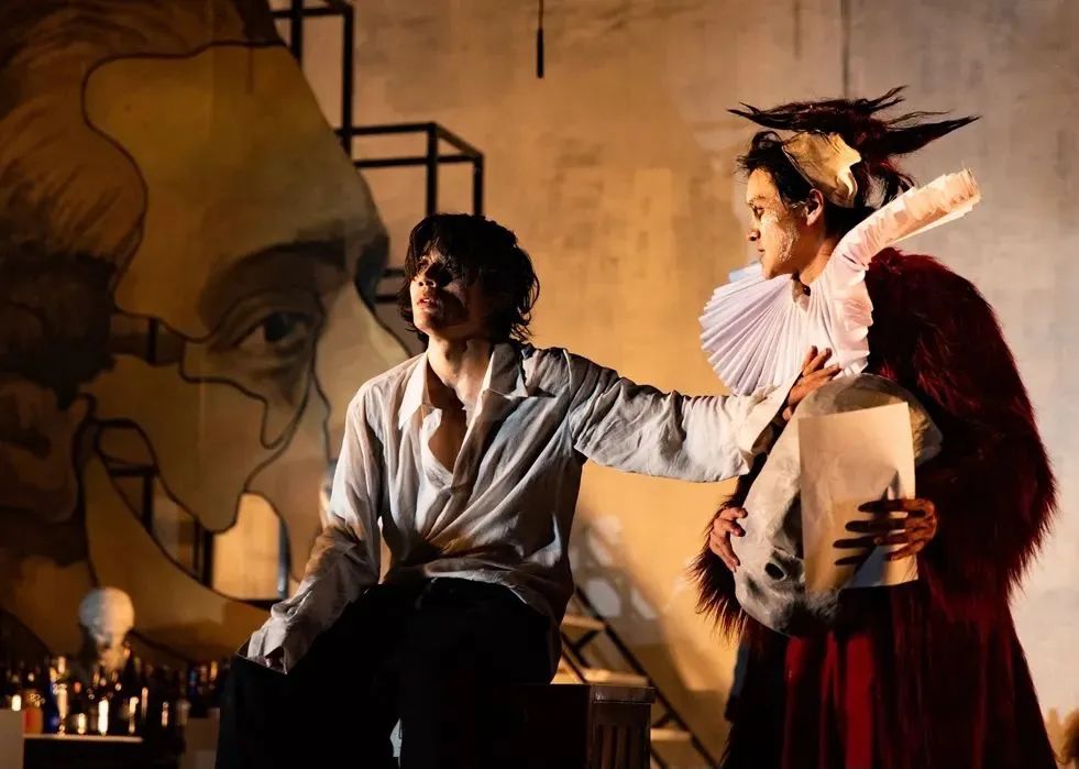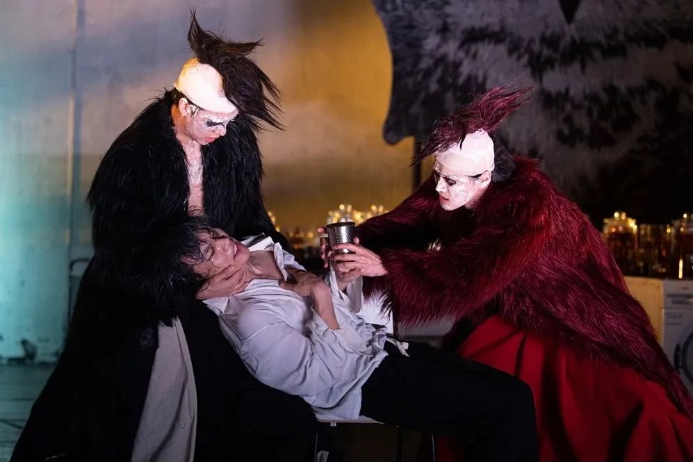 其实孟京辉对于时代变化和新生事物一直是有敏锐察觉力的。歌德笔下的浮士德一生希望通过求知与探索来对抗生命的虚妄,而魔鬼“以灵魂为契约”为他打开欲望之门,让他在放纵自己欲望的命运因缘中,得到让世上所有人艳羡的一切,又不断失去曾经拥有的一切。这和当今时代,科技与艺术用“元宇宙”为人类打开次元大门,让人类感受到全新世界的极大诱惑,同时也陷入更深的欲望与迷惘的境遇,有着深刻的对照关系。