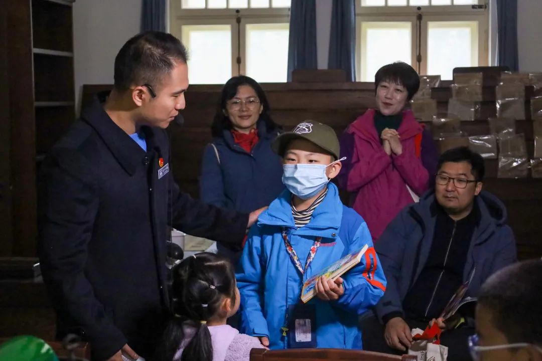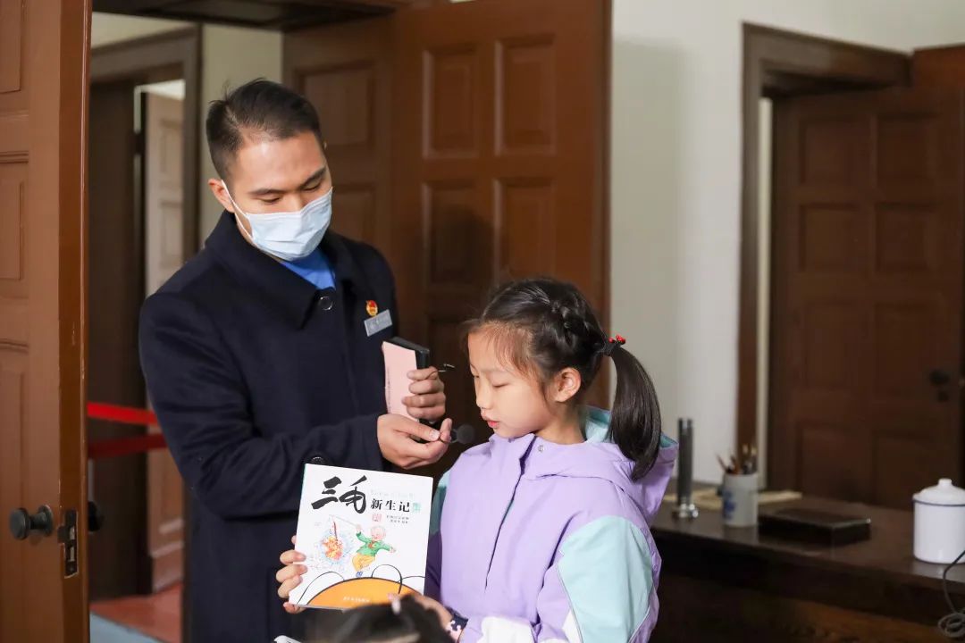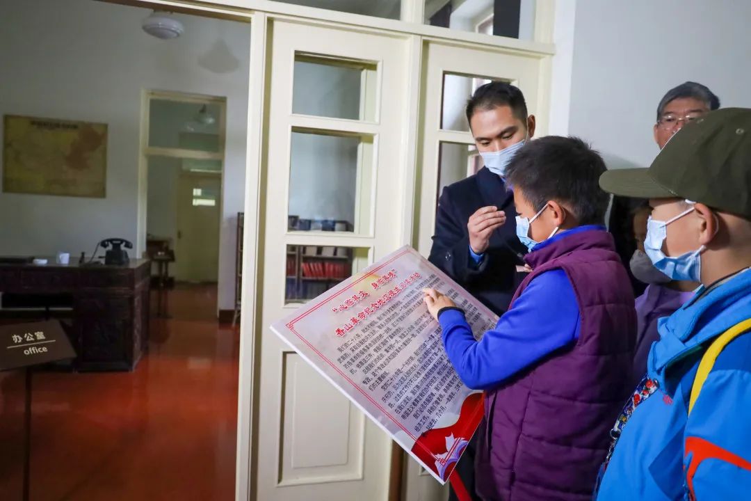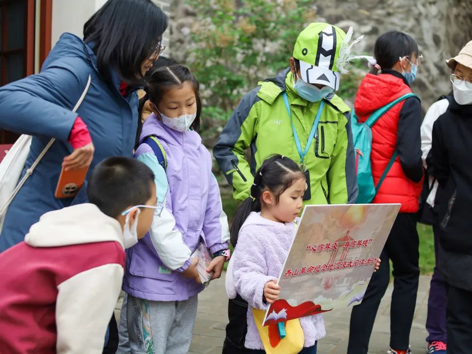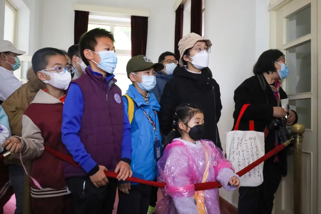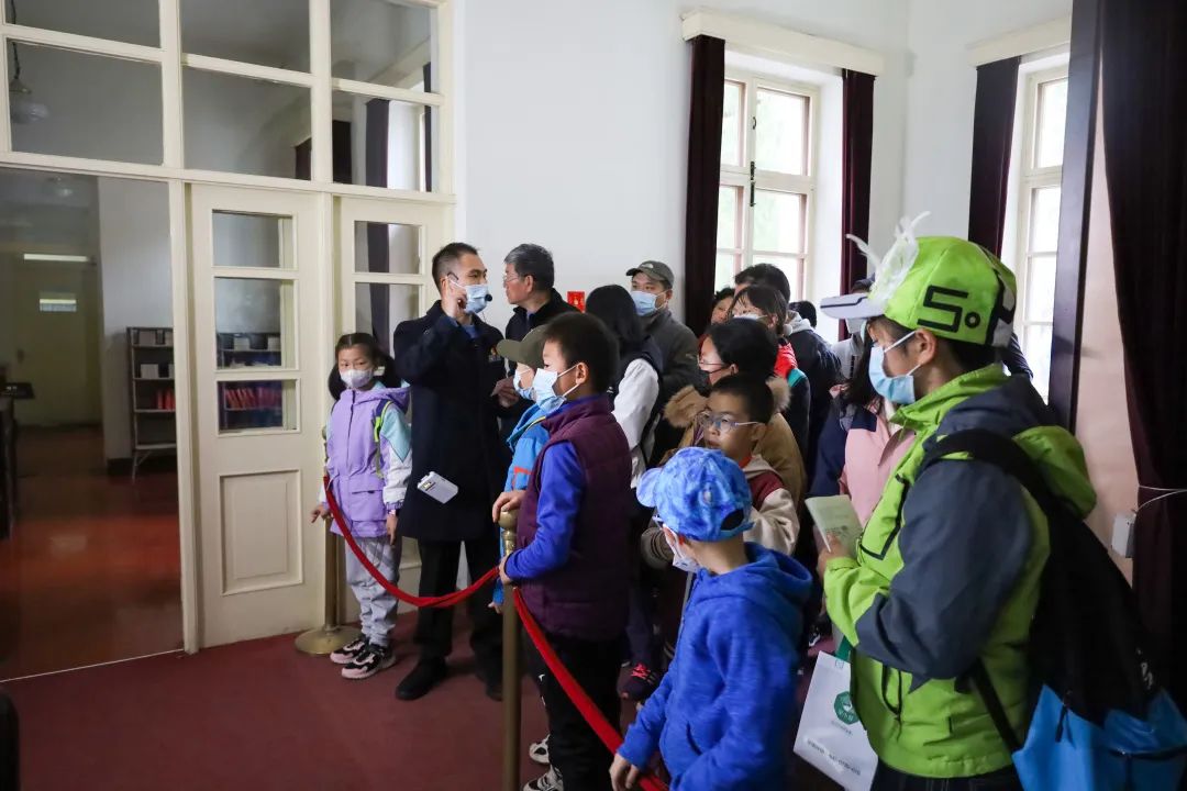 提前通过官方微信公众号招募的家庭,正跟随着香山公园红色文化宣教员赖天蔚,参观毛主席的办公室。