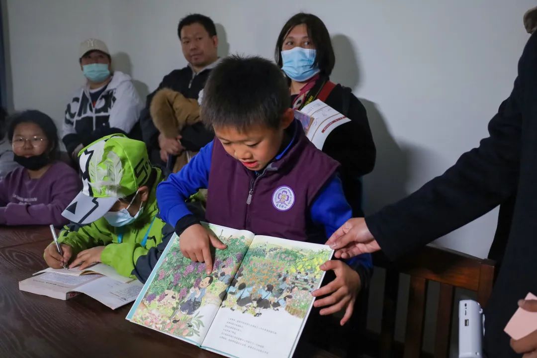 讲到这里,赖天蔚顿了顿,拿起一块展板,邀请其中一组家庭诵读《论人民民主专政》(节选)这篇文章。清华附小的李元辰高声朗读起来:“我们的二十八年,就大不相同……”