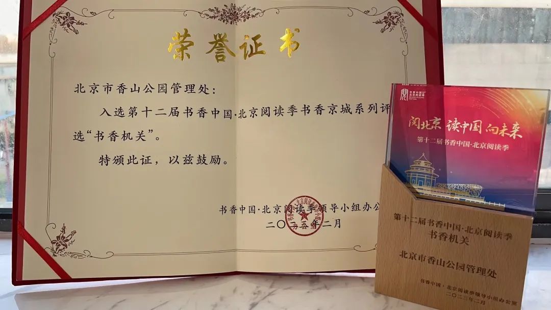 香山公园一直重视推广阅读活动,面向职工,开展读书分享,建设职工书屋,培养干部职工形成良好的阅读习惯,面向市民游客,积极发挥阵地作用,每年都举办一些特色阅读活动,倡导全民阅读,2022年获得首都书香机关的荣誉称号。