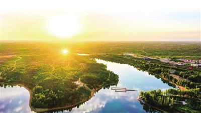 初夏的鄂尔多斯市康巴什区,阳光明媚,乌兰木伦河碧波荡漾,在阳光照射下熠熠生辉。