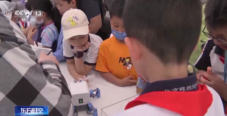 在中科院自动化研究所,参观者被各类人工智能领域的新技术所吸引,“紫东太初”多模态大模型、类人人形机器人等都来自自动化所最新的科研成果。现场各种智能互动体验设备吸引了众多青少年参与。
