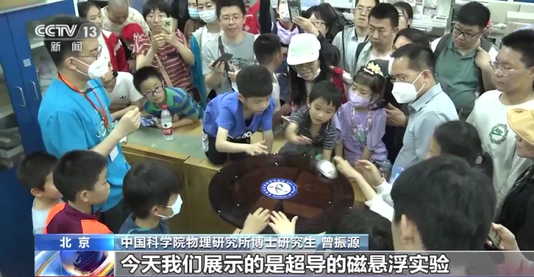 中国科学院物理研究所博士研究生 曾振源:今天我们展示的是超导磁悬浮实验,向大家展示的是超导在低温下抗磁,产生磁悬浮的现象。