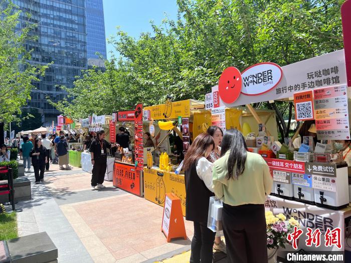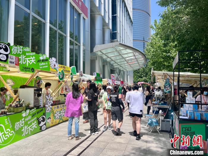 中新网北京5月18日电 (记者 张晓曦)由香江国际中国地产和自媒体“行走与咖啡”共同主办的“2023金台市集·第三届CBD咖啡青年节”18日在北京开幕,共吸引全国33个城市、共136家商家现场参与,充满创意的咖啡产品和丰富的活动内容也吸引不少观众前来“打卡”。