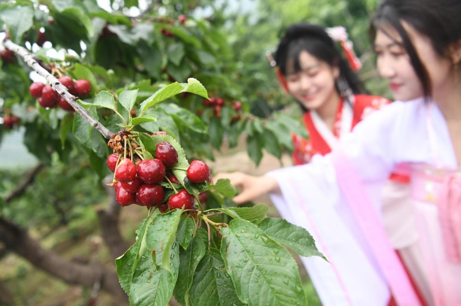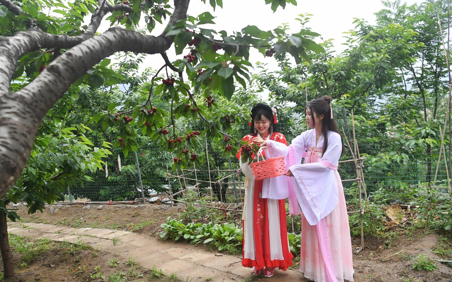 活动现场,不仅有20余种樱桃可供品尝,还能试吃本地特色的樱桃深加工产品,如樱桃酒、樱桃罐头和樱桃饼干,同时,汉服表演、花式调酒、采摘体验等丰富多彩的活动,也吸引了不少游客驻足参与。