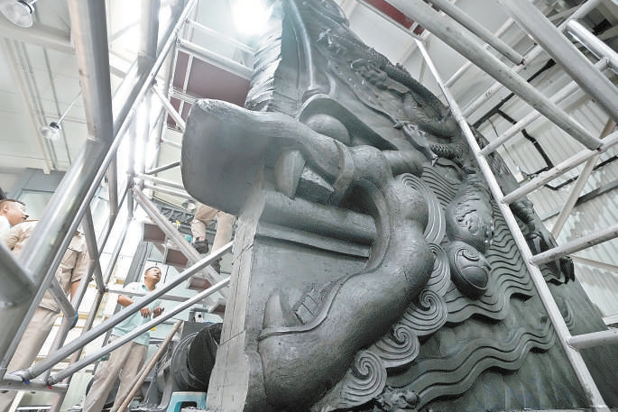 高度超3米,重达数吨,1∶1还原太和殿同款正吻进入倒模阶段。本报记者 王海欣摄