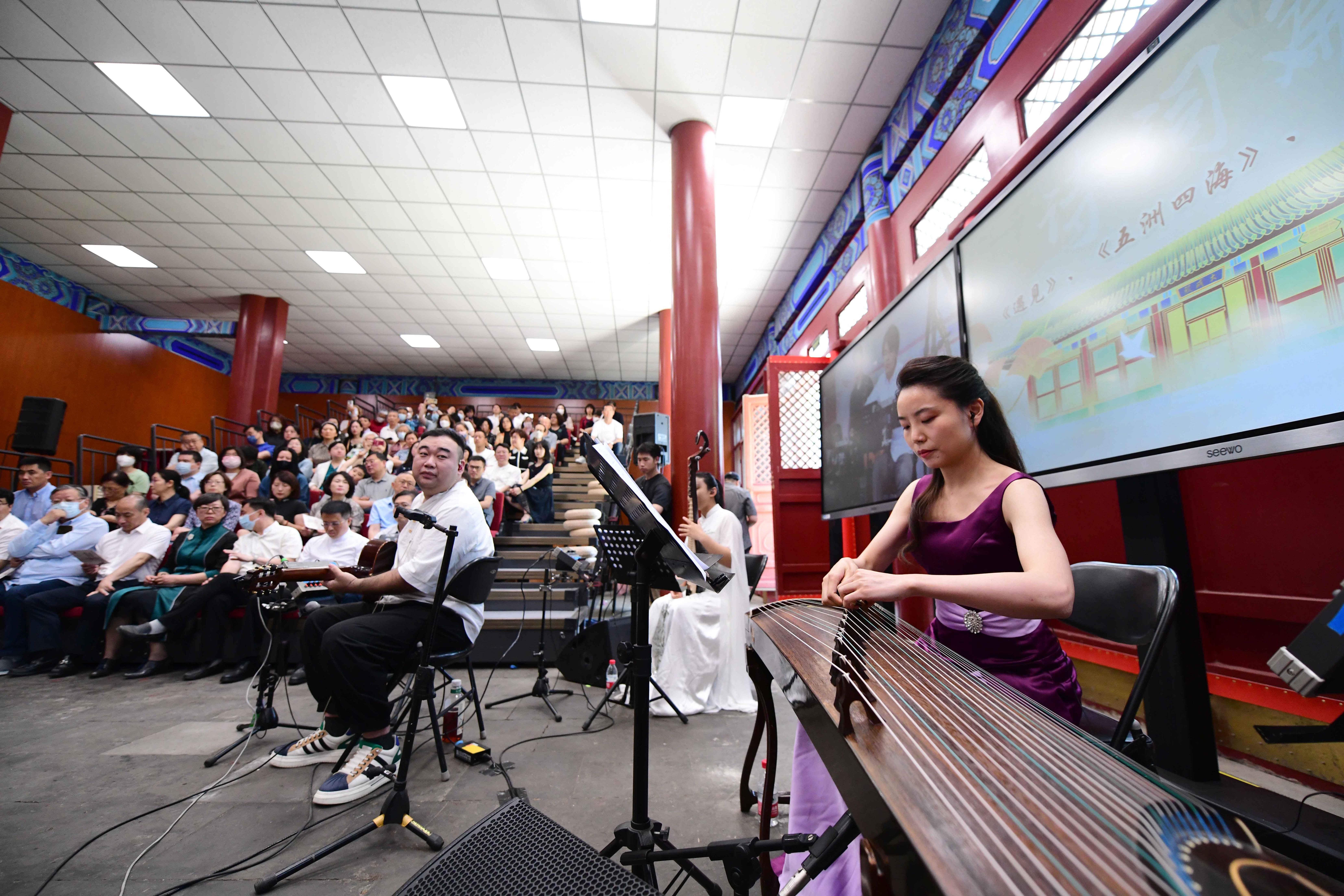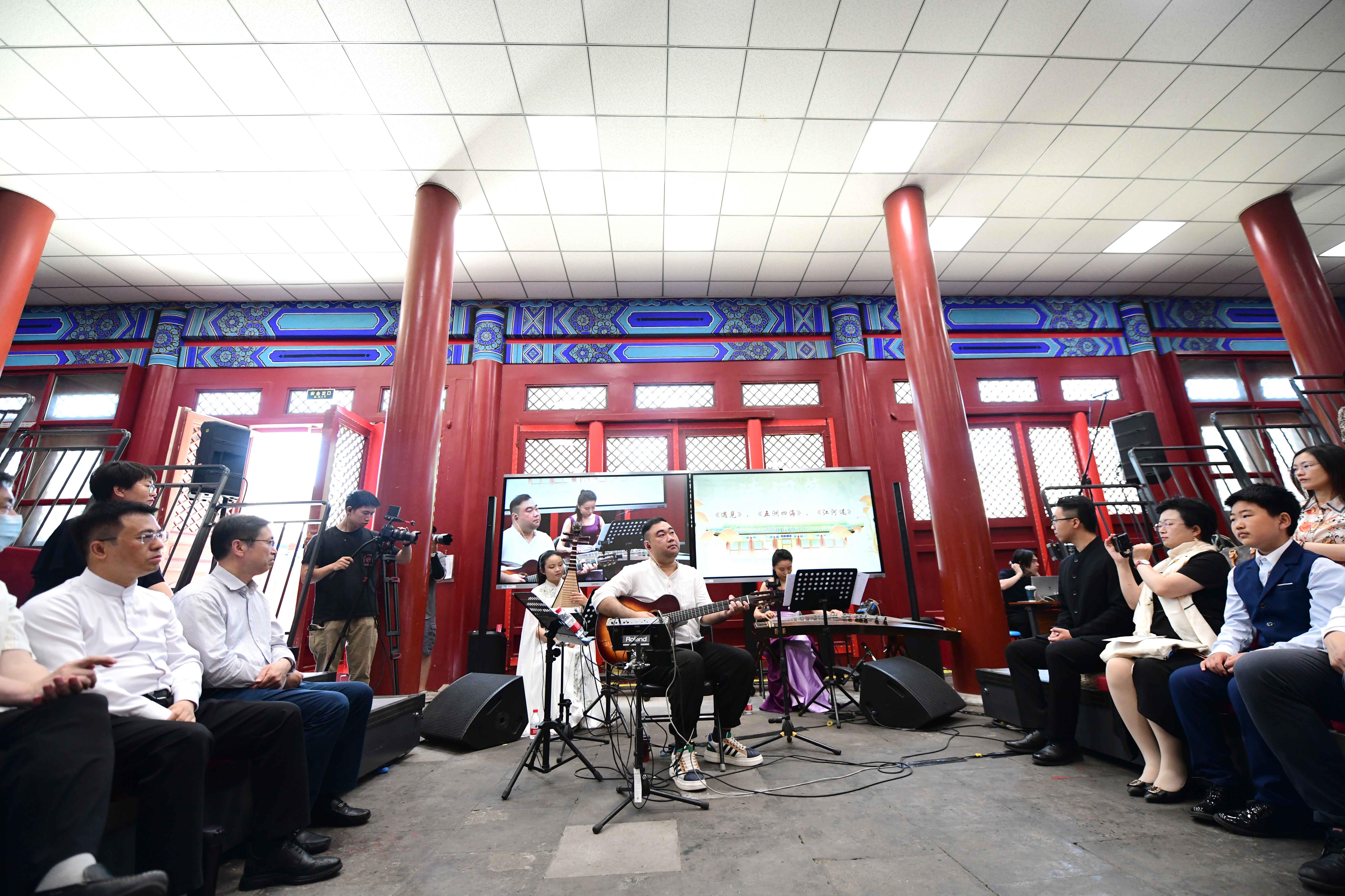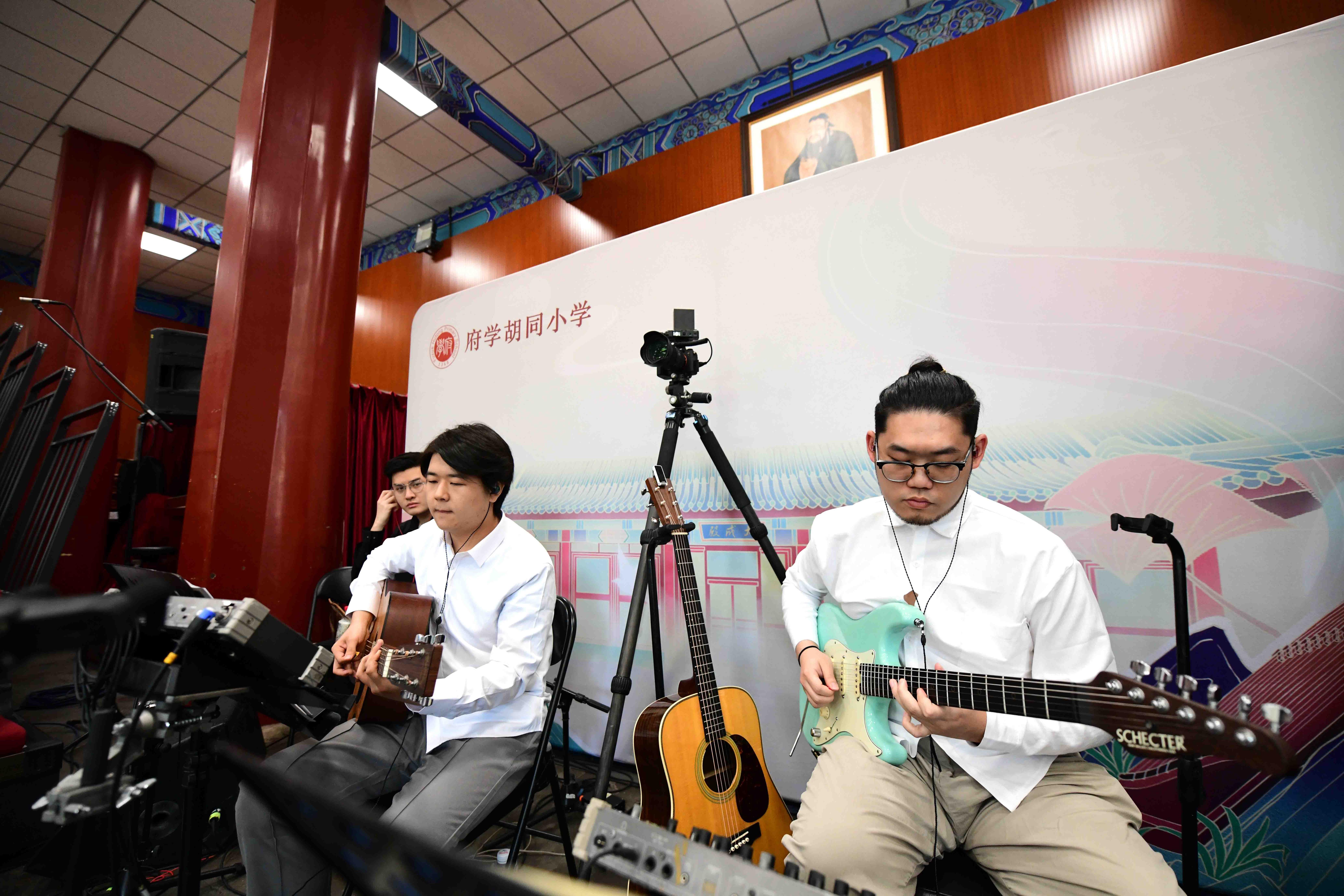6月3日,府学胡同小学里,有着600多年历史的大成殿里响起了新国潮原创乐曲,该校以一场古建里的音乐会向先贤致敬、向经典致敬、向文化致敬。