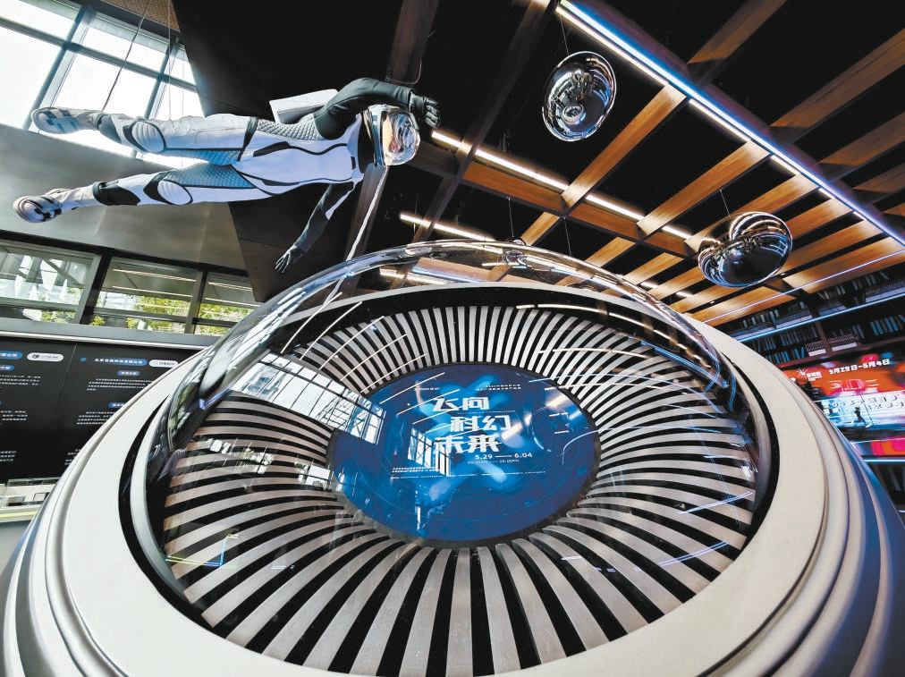 首钢园中关村科幻产业创新中心一层展厅前,平板电脑里的画面将虚拟与现实结合起来,AR展示的未来飞车在园中原本运输炉渣废料的高空轨道上穿梭驰骋……展览围绕科幻产业发展的最新成就,通过“元宇数流”“交感穿梭”“智元空域”“漫步未来”四个板块,展示了50余家科幻领域企业的新技术、20余个科幻IP氛围道具装置和互动装置,共计80余项展品。这场极具想象力和体验感的科幻盛宴将持续至6月4日。