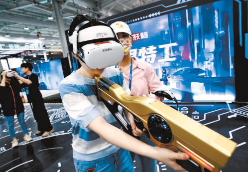 北京科幻嘉年华“潮幻奇遇季”板块,观众沉浸式体验电竞游戏。