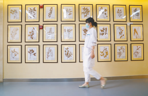 在“客厅”,待客的“人参枸杞九宝茶”“葛根枳椇子茶”“胖大海菊花茶”让人们了解体质与茶饮的搭配;“卧室”里,用栀子、板蓝根、艾叶等染色的布艺床品、药枕,还有中医药护肤品、理疗垫,让中医药帮助居民睡得安心;“厨房”中,展示着养血安神酒、滋阴润肺酒、益肾平喘酒等药酒的药方,还有菜椒、西红柿、豆角、茄子、平菇、藕等常见蔬菜的“药性”,参观者可以在中医大夫的指导下找到适合自己的食疗“搭档”;“书房”中,点一盘线香,听听“五音疗法”的乐曲,感受心灵上的宁静致远……