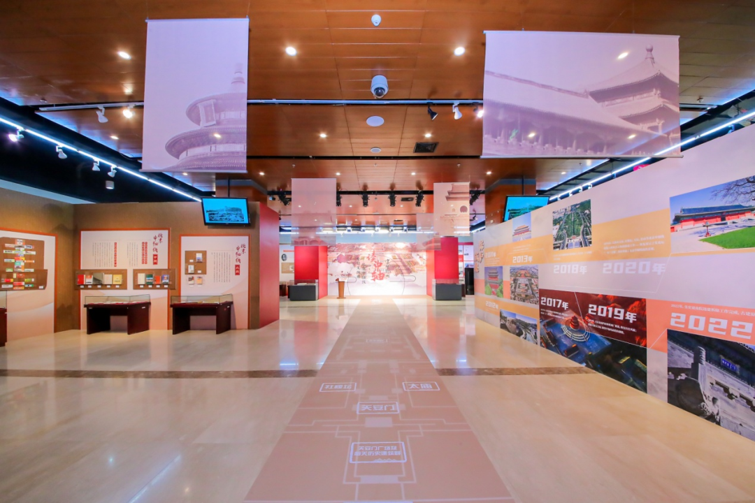 斑驳的碑拓彰显源远流长的古都文化。展览中,5幅北京城的古老地图,展现了中轴线在不同时期的历史形态;5株苍翠遒劲的古树,首次将观众目光汇聚于中轴线上绵延千百年的生命奇观;10幅碑拓上的斑驳字迹,带领观众开启一场古今中轴的时空对话。