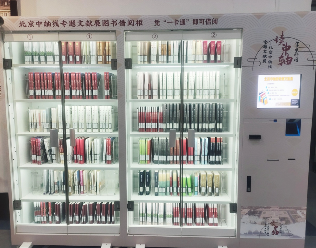 展览现场还设有自助借还书机,260本与北京中轴线相关的书籍供广大读者进行延展阅读,让中轴知识走出图书馆,走进百姓家。