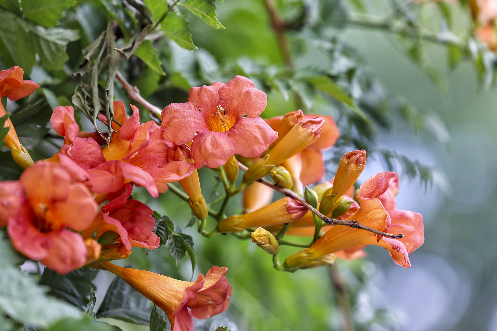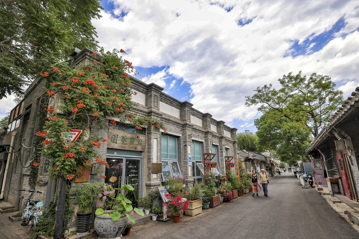 缤纷六月,胡同花事又上新风景。漫步东四胡同,满目芳菲。凌霄、蓝雪花、五色梅、矮牵牛、天竺葵、叶子花等各色夏花竞相绽放,为老胡同增添了绚丽色彩和浪漫诗意。
