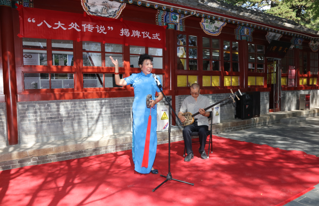 仪式现场对近年来的保护传承成果进行展演。区教委、区非遗中心领导为古城第二小学、石景山学校授牌“八大处传说”传承共建校,为展演代表和“八大处传说”的校外辅导老师、节目创编人颁发“八大处传说”讲述人证书。
