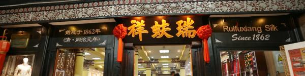 1862年创建于济南,为旧京城“八大祥”之首,荣获“中国丝绸第一品牌”殊荣,是享誉海内外的中华老字号。北京城流传多年的歌谣“头顶马聚源、身穿瑞蚨祥、脚踩内联升”就是对瑞蚨祥名满京城的生动写照。瑞蚨祥中式服装的特点在于秉承传统工艺技术,每一步都是纯手工制成,设计考究,制作精心,呈现了手工技艺的文化之美。不仅有实用价值,而且还具有很高的艺术价值。
