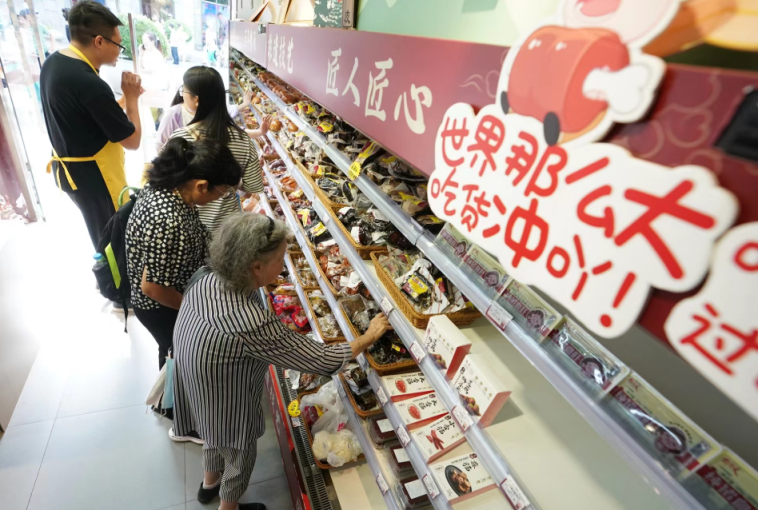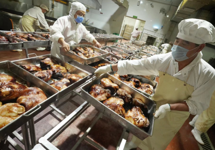 据悉,从8月开始,天福号已经开始加大投料生产,备货80吨熟食准备迎接立秋,特别是像备受消费者喜爱的酱肘子、古法酱牛肉、酱肉、猪头肉等各类熟食。