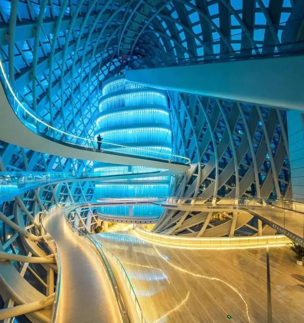 相较于美克洞学馆的柔软,凤凰中心则多了一些力量感,规则的螺旋结构构成了一种无限循环的美。在这里随手一拍,更能体现出几许哲学的意味。