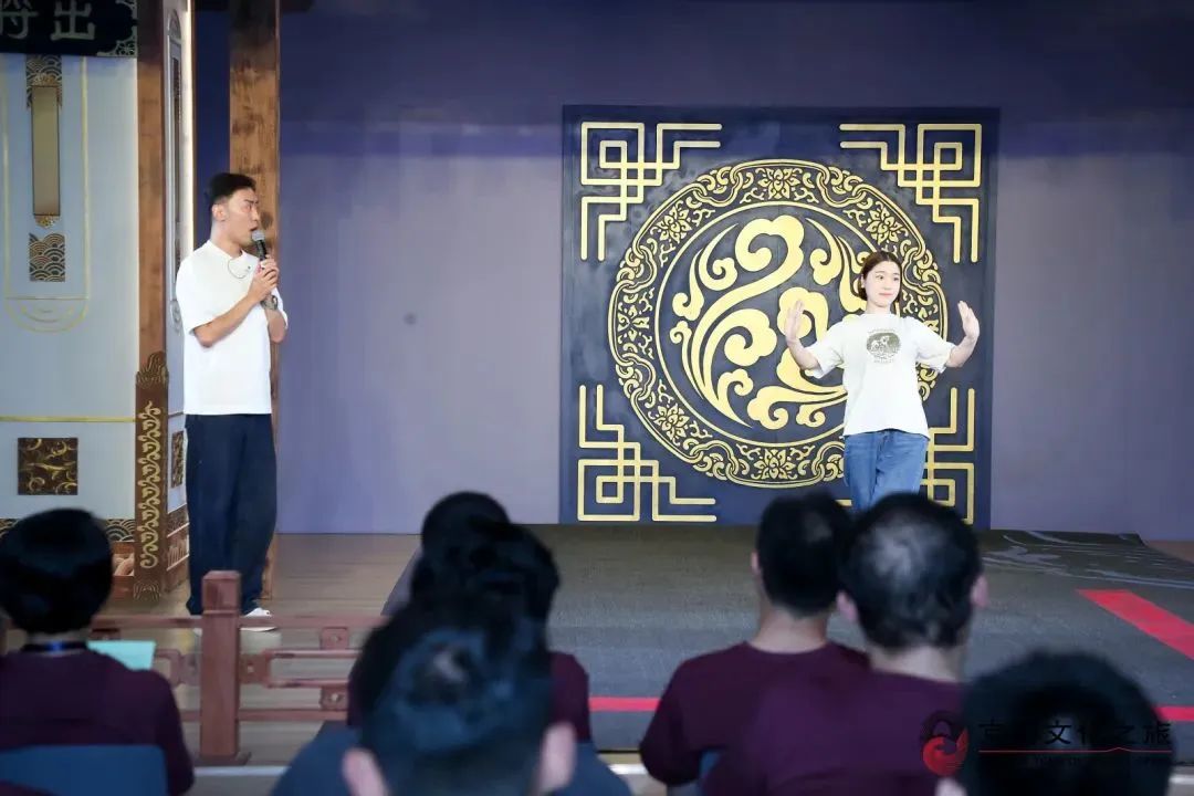 在结束了愉快的京剧骑行后,学子们回到北京市海外文化交流中心文化空间,参与“讲+演”的京剧文化体验活动。首先由来自北京京剧院的姜柯冰为现场观众们讲解了京剧的综合性、夸张性、程式性和虚拟性四大特征,介绍了京剧的起源、服装、道具以及演员的表达方式等相关知识。接着欣赏了由北京京剧院带来的《夜奔》《秋江》《闹天宫》三部经典折子戏演出,让回国学子们近距离感受了京剧表演艺术的深厚魅力。