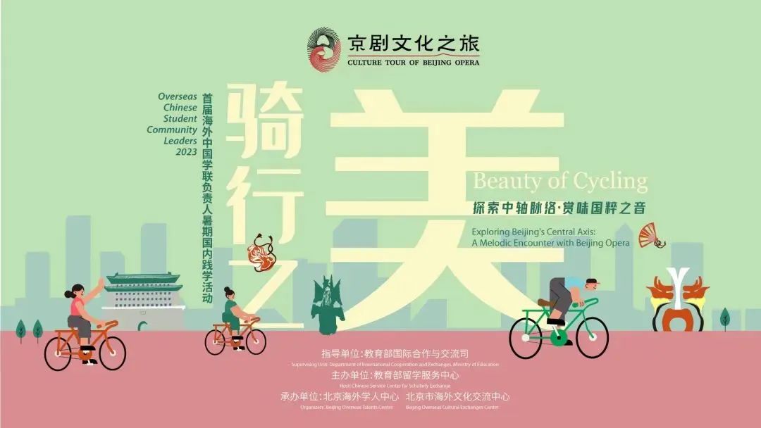 本次首届海外中国学联负责人暑期国内践学活动暨“京剧文化之旅·骑行之美”活动由教育部国际合作与交流司指导,教育部留学服务中心主办,北京海外学人中心、北京市海外文化交流中心承办。