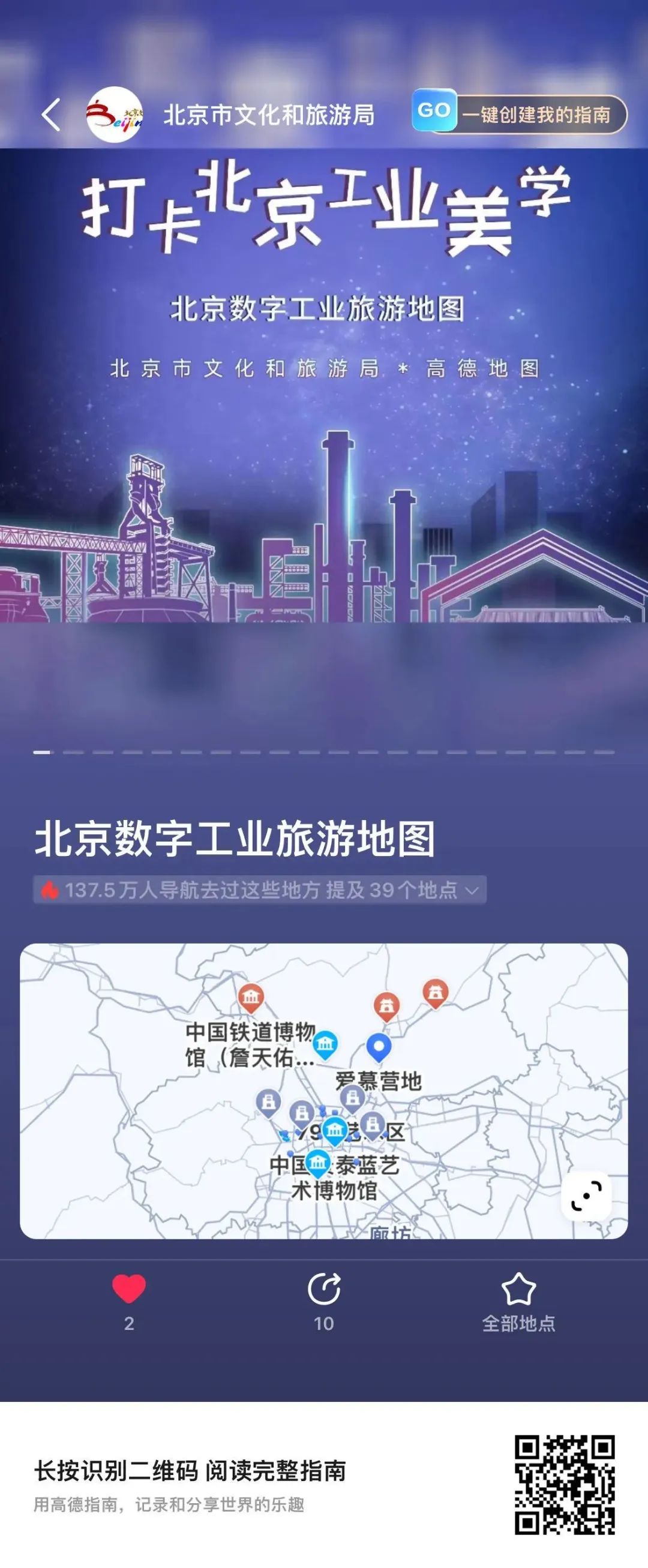 进入高德地图app,搜索“北京工业游”,即可出现“北京数字工业旅游地图”专题页。