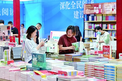 河北石家庄,读者在惠民书市上选购书籍。梁子栋摄/光明图片