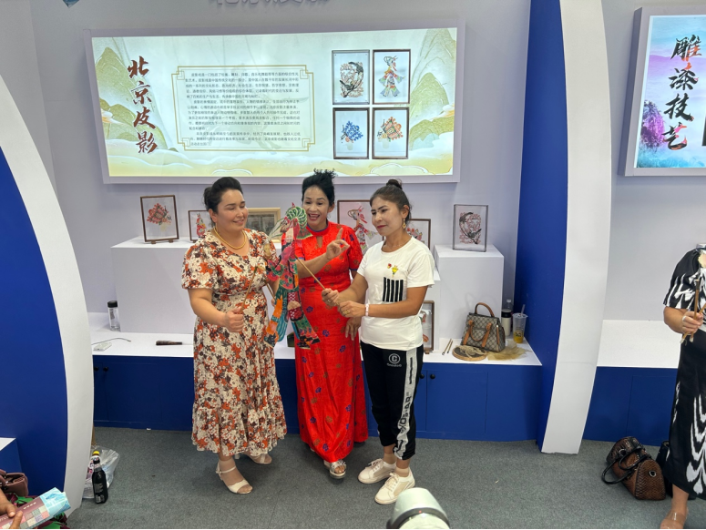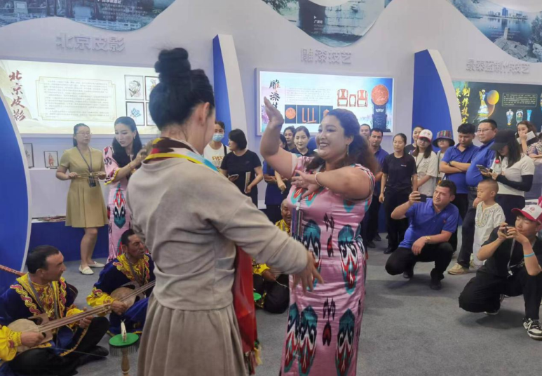 不少观众专门前来打卡景泰蓝,“以前在课本上学过景泰蓝,但一直没见过真的景泰蓝,这次终于能亲眼见到、摸到景泰蓝了!”很多观众对北京泥人张带来的生动可爱的泥塑阿凡提、小毛驴和巴依老爷倍感亲切,回忆小时候看过的动画片《阿凡提》,纷纷拍照发朋友圈;许多少数民族观众体验北京皮影戏之后,拿出自己的乐器,在北京展区里唱歌跳舞,展现出一幅京疆民族文化交流交融的生动场景。媒体多次前来北京展区体验、采访,同步通过阿克苏日报电子大屏在全市滚动播出。