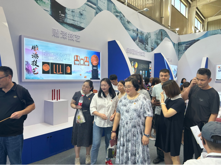 开幕式当天,饶权副部长,田文副组长,文化和旅游部非遗司司长王晨阳等领导同志来到北京展区,参观了北京市文化和旅游局组织的景泰蓝制作技艺、京作硬木家具制作技艺、北京泥人张、雕漆、毛猴制作技艺、北京皮影6项非遗项目,并饶有兴趣地与传承人进行交流,了解传承情况和产品开发情况。