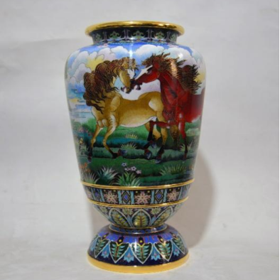 为促进各民族交往交流交融,对口援疆19省市与新疆互赠了非遗作品,这些互赠的40件作品也在非遗展上进行了展示。北京市赠送的非遗作品为景泰蓝“骏马瓶”和北京泥人张“吉庆有余”泥塑。“骏马瓶”以新疆各族同胞喜爱的骏马为主题,寓意马到功成、昌盛发达;北京泥人张“吉庆有余”泥塑以民间传统吉祥符号莲花、锦鲤、年画娃娃等寓意当代民众和谐美满的幸福生活。这些捐赠作品艺术构思巧妙、做工细腻精美,蕴含着民族之间和睦团结,国家发展昌盛发达的美好寓意。