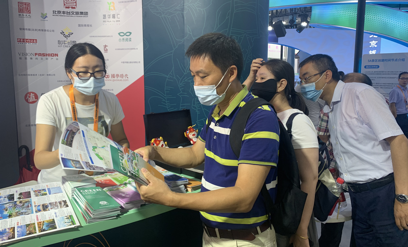 展会期间,在丰台展区,还有丰台区旅游服务中心配合此次服贸会开展的旅游咨询服务活动,现场设置了咨询展台,将通过发放宣传资料、提供旅游知识科普、为游客提供旅游咨询服务等方式,对丰台各类特色文旅资源进行推广介绍。