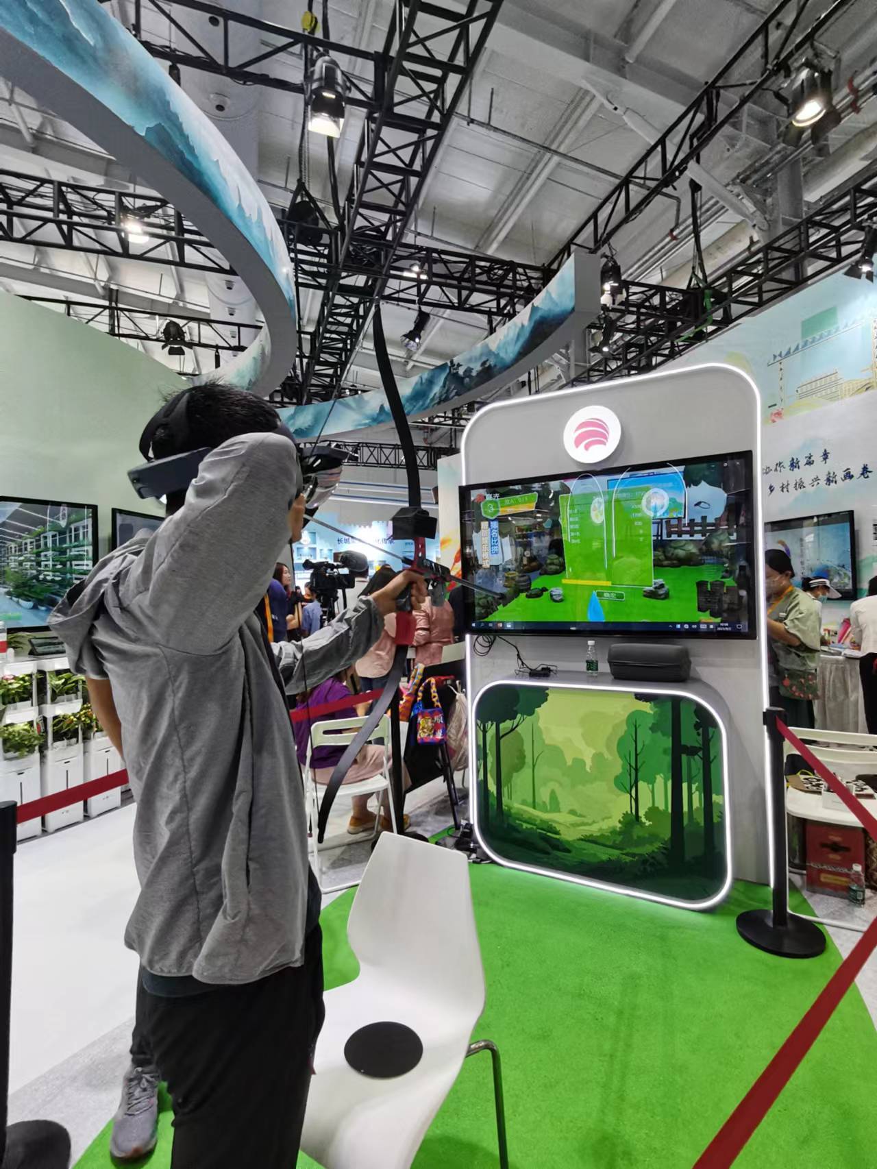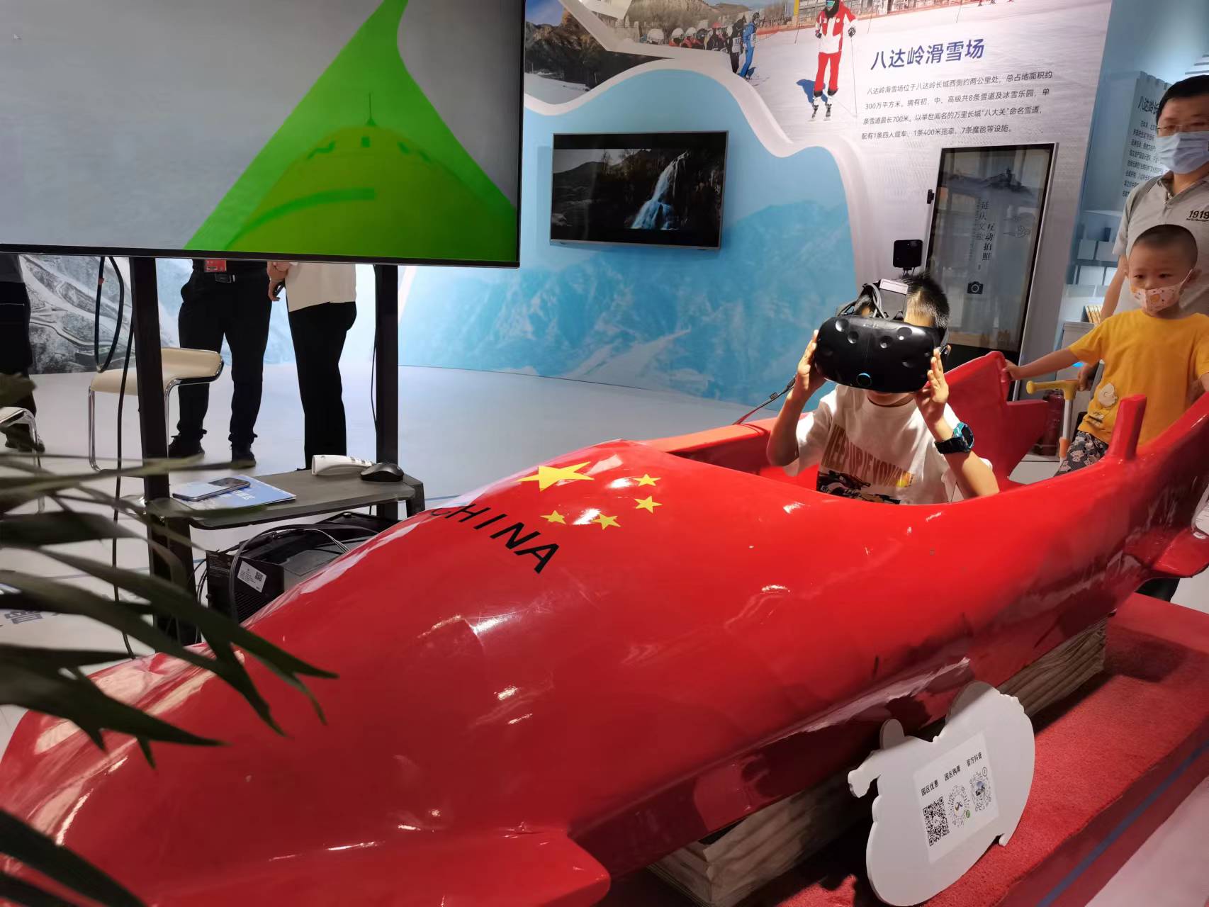 在冰雪运动展示方面,去年就十分受欢迎的红色雪车模型再次亮相今年的服贸会现场,观众戴上VR眼睛,仿若置身“雪游龙”赛道,可以尽情体验这项冰雪运动的魅力。
