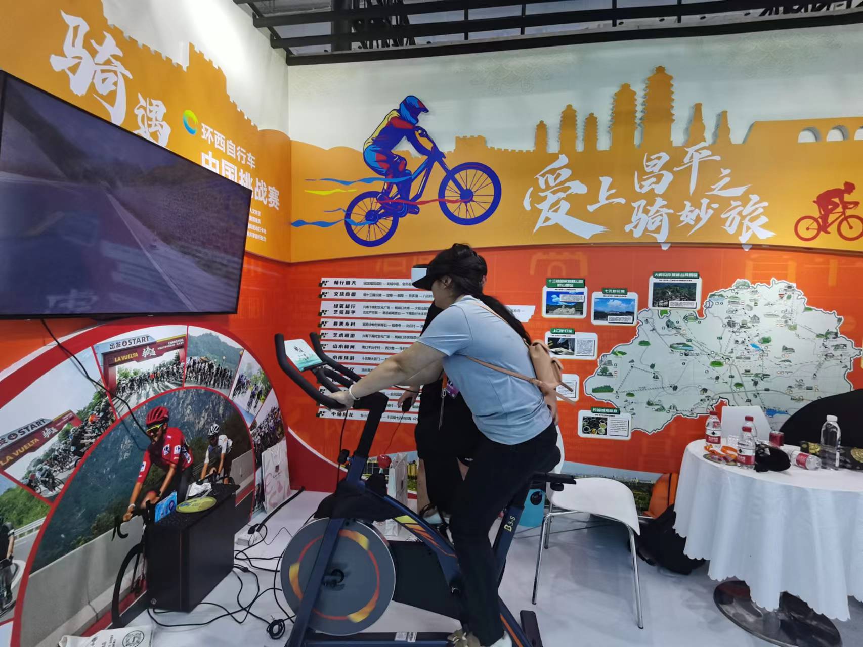昌平区展区分为:文物展出区、“昌平有礼”文创市集、“文博书苑”等区域,在科技赋能之下,观众还可以体验环西AR骑行、数字人3D换脸等。