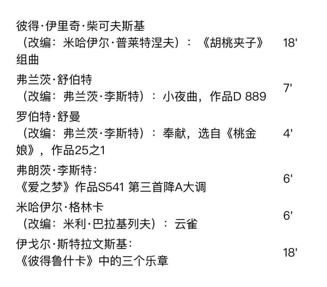 本场音乐会,青年钢琴家张浩天将演奏曲目聚焦于音乐史上“改编曲”的传统,将原本为其它演出形式所作的音乐移植到钢琴上,彰显钢琴这件古典乐器的表现力。在曲目选择上,除李斯特改编舒伯特与舒曼、巴拉基列夫改编格林卡的作品外,柴可夫斯基《胡桃夹子》与斯特拉文斯基《彼得鲁什卡》两部芭蕾舞剧音乐改编曲将成为本场音乐会的重头戏。