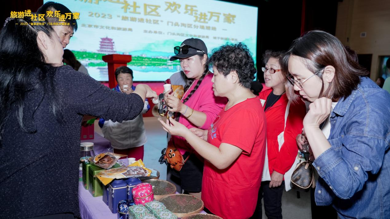 现场设置的文旅市集区里,灵山绿产、妙峰山玫瑰精油、京西黄芩茶等特色物产,受到了市民群众的热烈欢迎,前来参加活动刘女士说:“黄芩茶是咱门头沟的特产,不管是自己喝还是送人都非常合适,刚刚看到了就忍不住又买了两盒。这个旅游进社区活动真的是把旅游和产品都送到了家门口。方便了我们老百姓。”