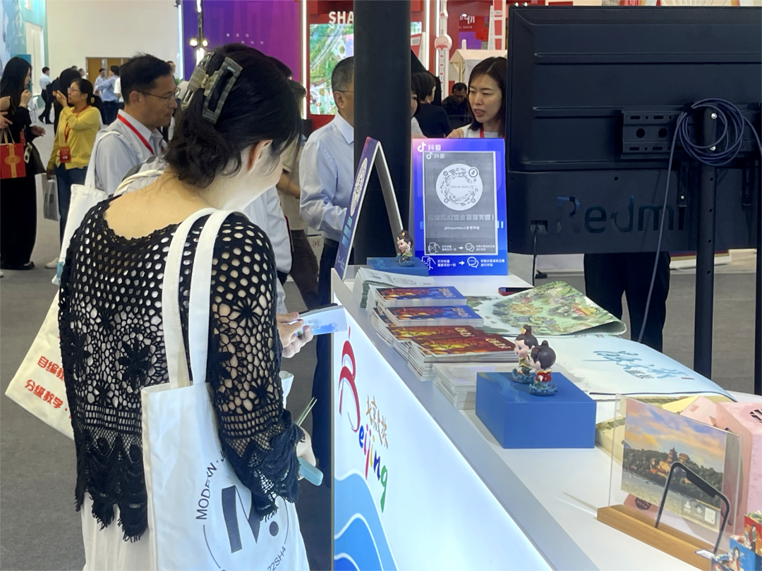 观众现场扫描颐和园“四季颐和”数字明信片上的二维码,可随时随地观看颐和园的人文景观;庸禾坊口感酥脆、豆香四溢的咯吱盒,给观众带来一场舌尖上的大运河之旅;通州大运河文化旅游景区小程序实现“一部手机游运河”,在线上感受数字运河的魅力。多姿多彩的古都新玩法吸引了一批批观众前来打卡、试吃、体验,独具京味特色的大运河文化旅游商品、新奇有趣的文旅科技融合体验使北京展区成为展会现场的一道靓丽风景线。