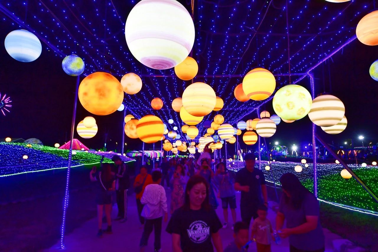这场灯光盛宴,共分为8大主题:穿越梦幻时光隧道、爱心长廊、浪漫爱情艺术、灯海、梦幻海豚湾、星球主题灯光、创意时尚光雕、北极光。全场以年轻浪漫爱情色彩为主线,由20余组灯光造型和现代光雕大小灯组组成,同时与氛围灯、流星灯、灯网、麦穗灯等十多种灯饰灯具结合,所及区域美不胜收。