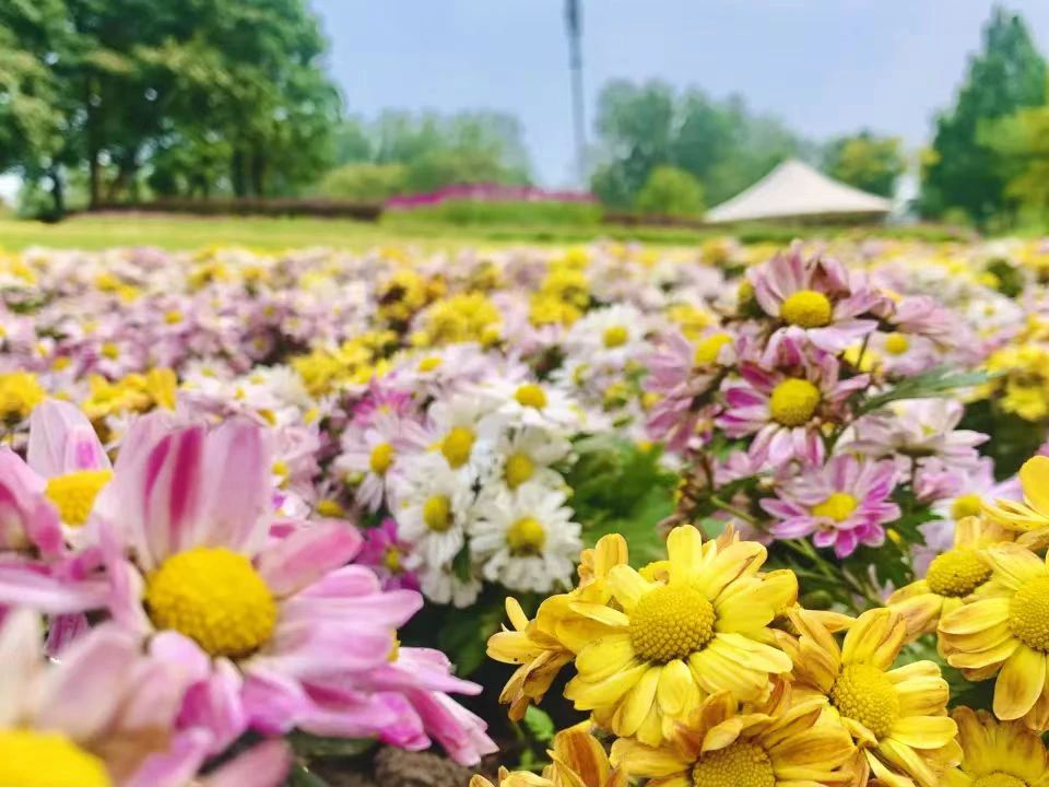 2023北京菊花文化节持续至10月23日,鲜花港景区总布展面积近13万平方米,采用70余种菊科和菊亚科花卉为主的秋季露地花卉,搭配“天地一色”“金背大红”等百种名品菊花6000盆,打造特色景观,构建花海盛景。