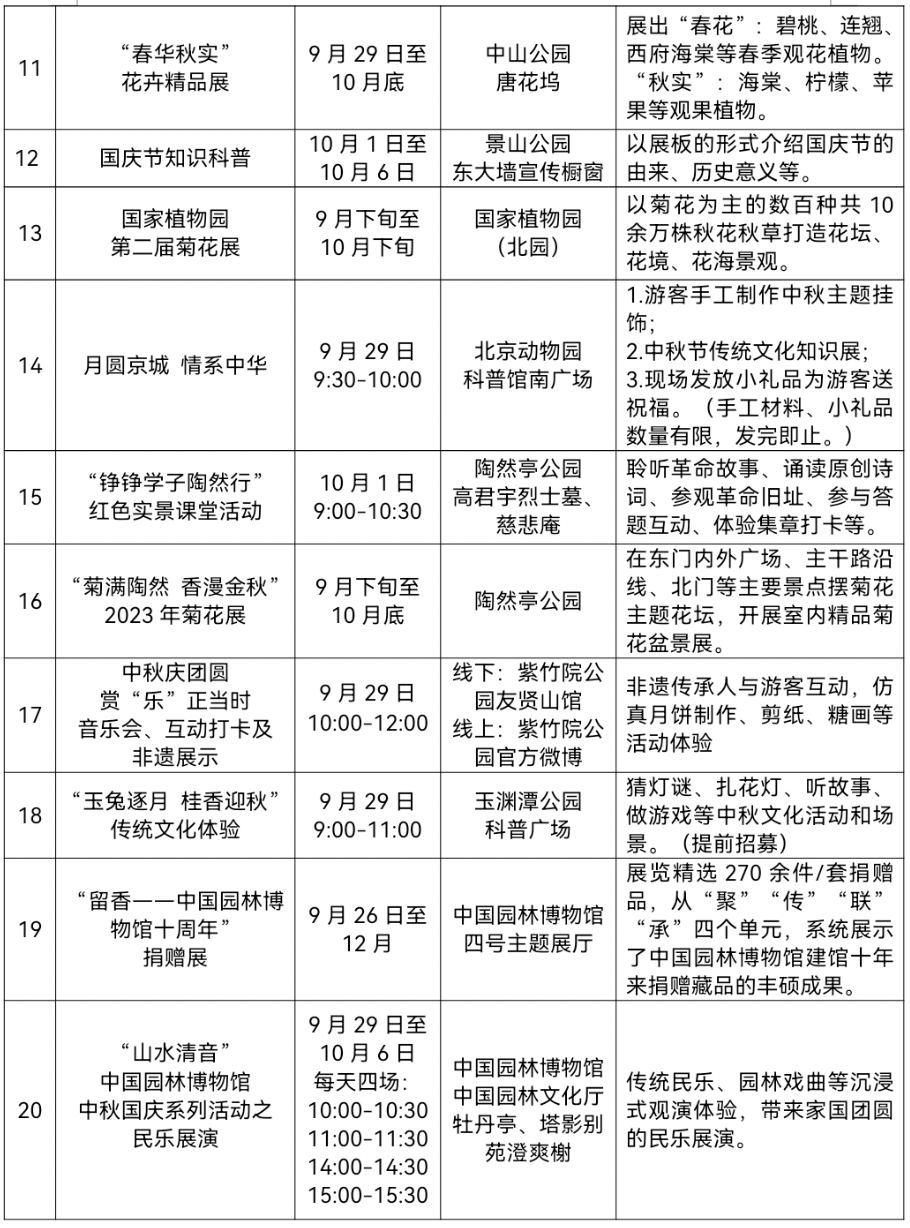 北京市属公园活动