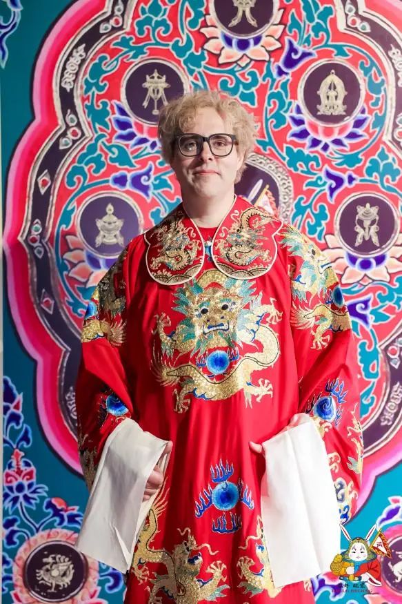 除了舞台表演,现场汇集了音乐、戏曲的互动多元体验。有京剧戏服换装打卡拍照、体验独特的舞台道具,也可以学上一句唱腔道白,不少外籍友人被迅速圈粉!