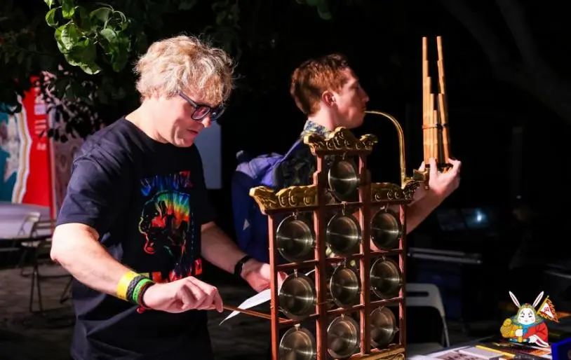 品茗、赏月、尝月饼,丰富的活动内容和智化寺独有的庭院、古树相映成趣,令人身心愉悦。参与活动的嘉宾多为长期在北京居住、工作的外籍友人,其中也不乏北京文化的发烧友,大家纷纷为主办方精心设计的以“宫、商、角、徵、羽”五音为理念制作的五色手环点赞,为这个令人难忘的非遗之夜点赞。