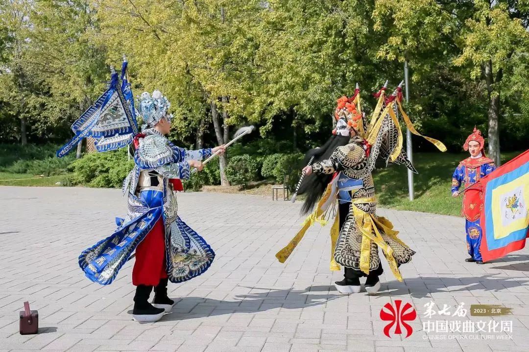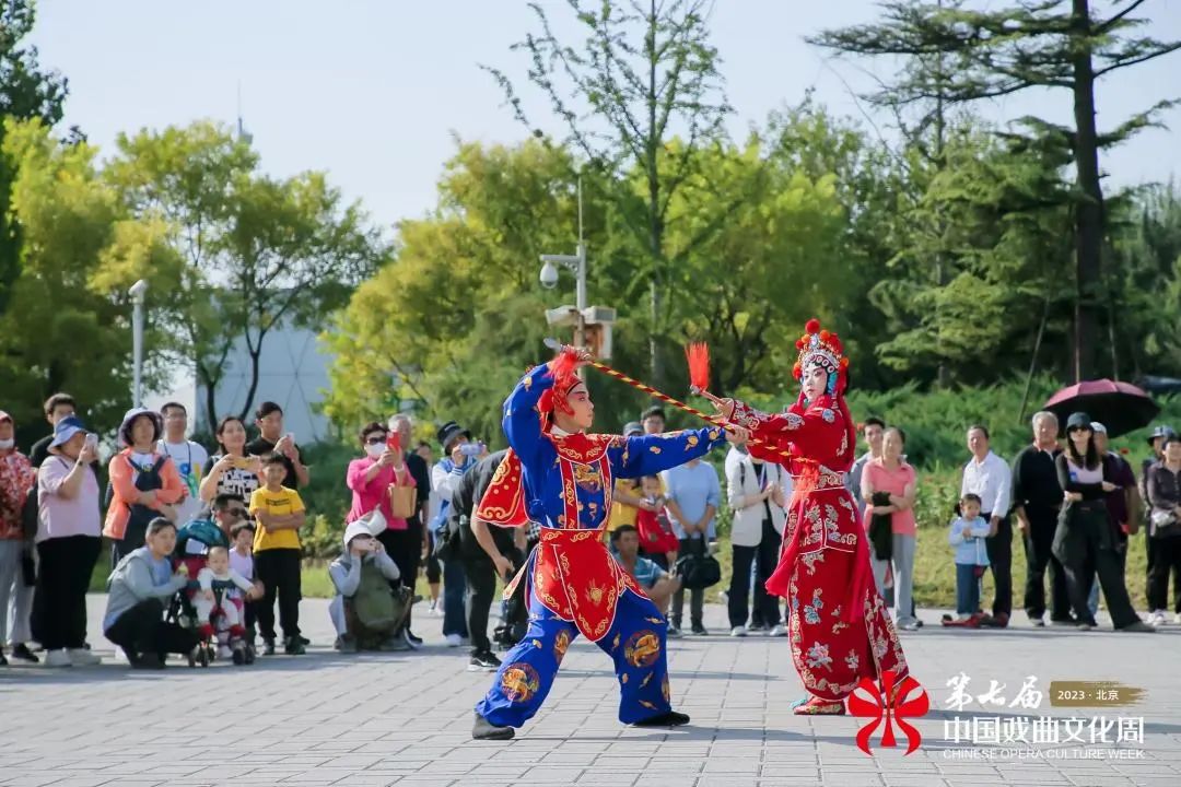 “快枪”“耍叉”“舞绸”“武戏对打”……国庆节当天,戏曲周为祖国送上一份特别的生日礼物。一幕幕戏曲绝活表演于北京园博园各处“闪现”,高难度的精彩场面引起观众的围观。无技不惊人,无技不成艺!本届戏曲周精心组织一系列“戏曲快闪”活动,让专业戏曲演员走出舞台,更多观众切身感受戏曲五花八门的“独门绝技”。