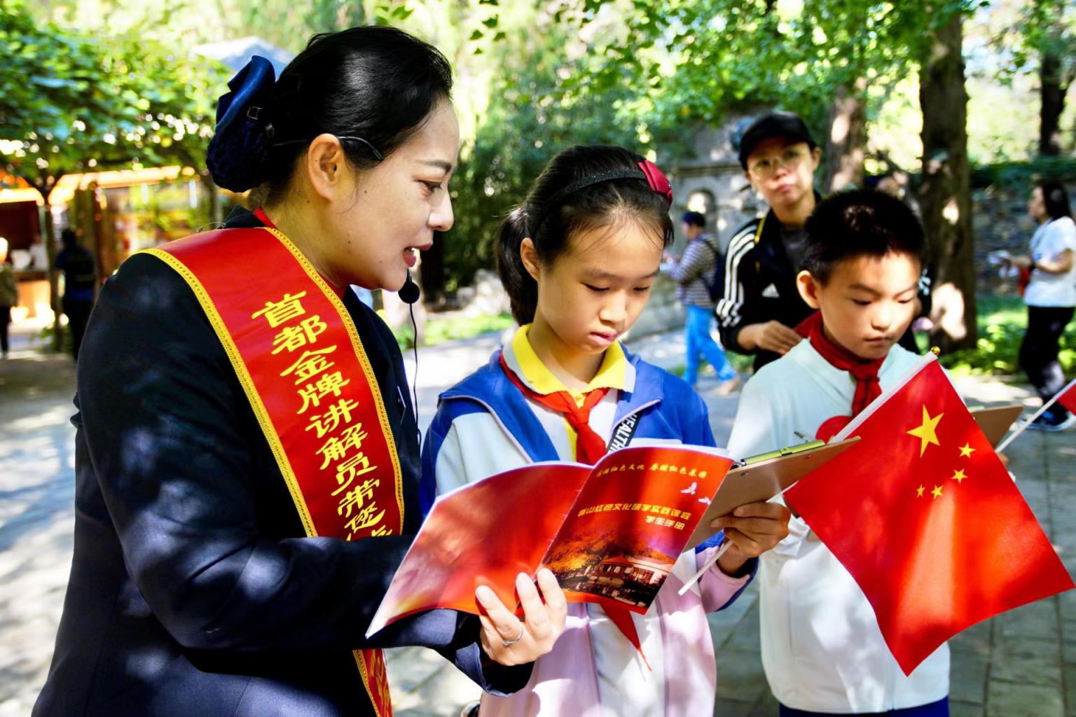 国庆节期间是开展爱国主义宣传教育的好时机,“我眼中的红色香山”深度游活动作为香山公园在国庆期间的一项红色文化活动保留项目,受到市民游客的欢迎。今年该项活动又进行了提档升级,家长们可以带着孩子来到香山革命纪念地,跟随红色文化宣教员,聆听香山红色故事,参与红色知识答题、红色诗词拓印、发报机体验、手绘帆布包等互动活动。同时,在双清别墅等处还设置了“表白祖国”“为祖国送祝福”等留言板,让孩子们在红色文化的熏陶中度过一个意义非凡的国庆佳节。