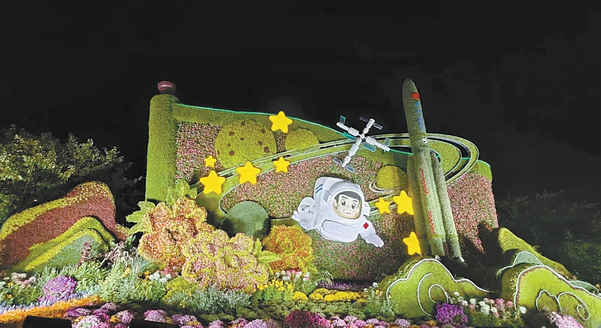 朝阳区亮马河畔、金地广场、三里屯、神路街牌楼这4处立体花坛及其他16处园林小品,吸引了不少市民游客驻足观看。朝阳区花坛主要以国庆菊、五色草、牵牛花、海棠花等颜色艳丽的品种为主,沿用了中国传统纹样为主要视觉元素。待夜晚来临,亮马河主题花坛与国际风情景观照明遥相呼应,营造出水上慢生活之“时光长廊”的夜景意象。