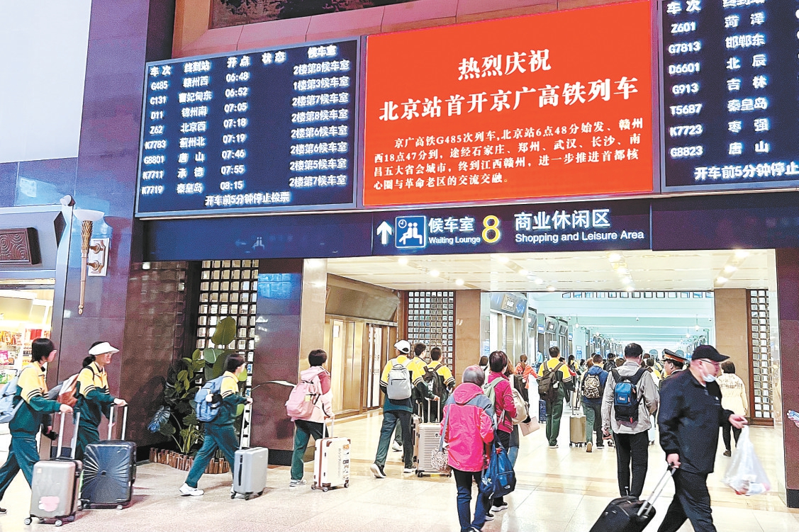 本报讯(记者 孙宏阳 通讯员陆万涛 张磊)随着第4季度铁路运行图调整,北京站10月11日起始发开行G485次京广高铁列车。G485次列车早上6时48分从北京站发车,当日18时47分终到赣州西站,途经北京、河北、河南、湖北、湖南、江西6省市,经停21座车站,将进一步推进首都核心圈与革命老区及沿途城市的交融交流。