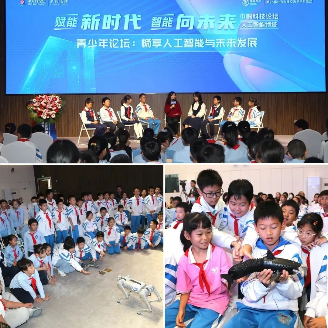 在“智话未来”巾帼科普大讲堂环节,邀请了小学科技社团的孩子们参加。来自高校及科研机构的五支专家团队分别展示了微小型仿生机器人、仿生水下机器鱼、远距离心率检测技术、高灵敏度光探测与光电信号转化技术、多足机器人等研究成果。前沿的智能机器人深深吸引了孩子们的热烈提问互动,并在随后举办的青少年论坛上围绕人工智能展开了充满奇思妙想的对话。