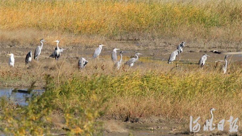 10月14日,苍鹭在张家口洋河国家湿地公园栖息。