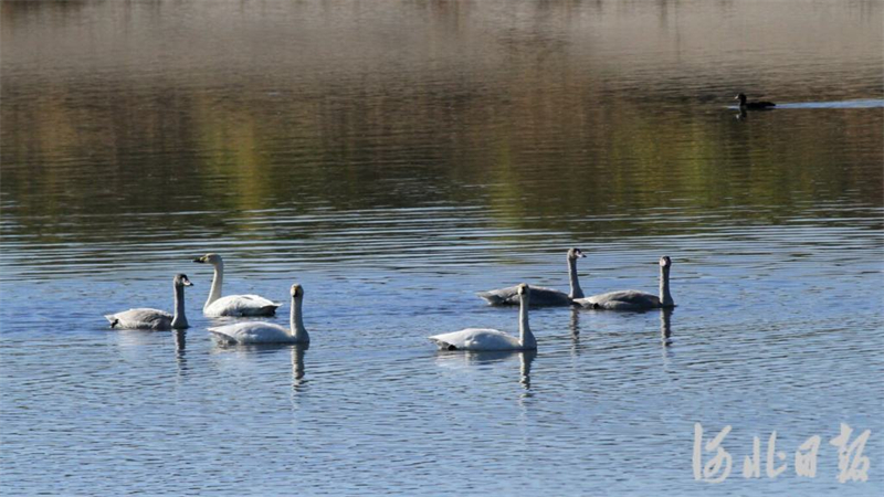 10月14日,在湖中游弋的天鹅。