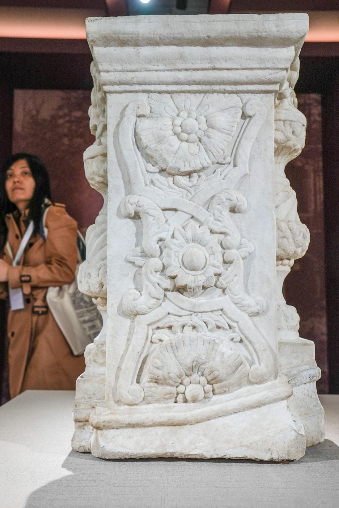 步入正觉寺,230余件(组)文物和展品按照正觉沧桑、圆明重光、追迹圆明、寻古长春、匠心圆梦、万园之园、聚散流离、圆梦之基等部分,立体展现出圆明园深厚的历史文化和丰厚的文物保护成果。在最上楼展出的7根汉白玉石柱是圆明园博物馆“重装”亮相后的明星展品。此次回归的7根石柱,经专家研究初步判断,来自于圆明园西洋楼遗址区,略有风化痕迹,保存状态完好。每一根石柱均刻有浮雕雕刻花卉、缠枝几何纹饰,工艺精湛。
