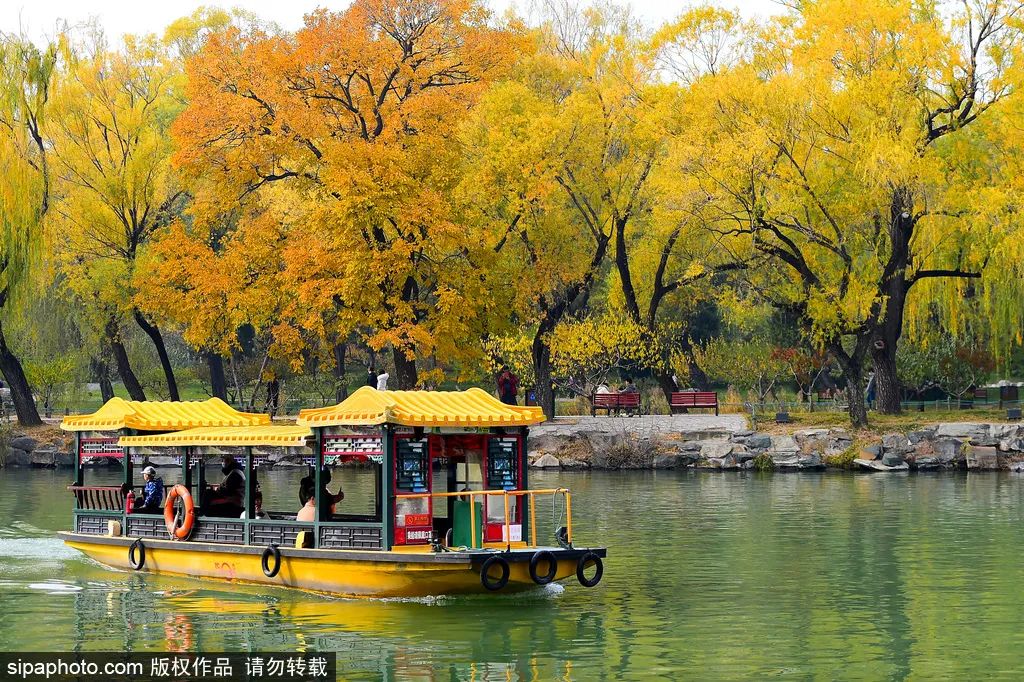 深浅斑斓的叶色与秋日的阳光映在河面,游船由后溪河往返于苏州街和昆明湖,动静结合,景色优美宜人。