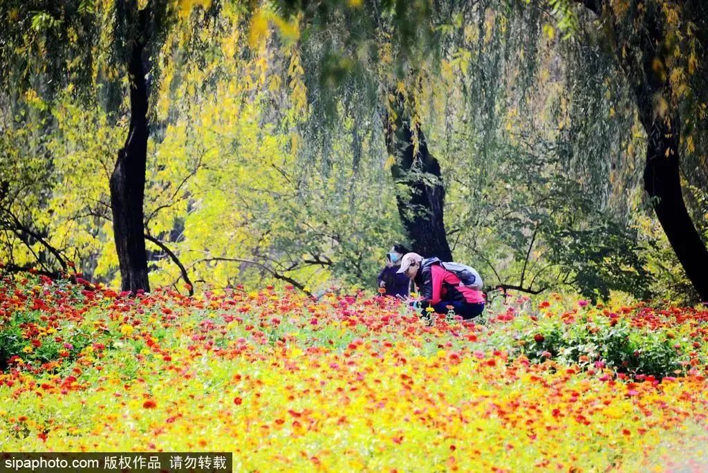 2023年圆明园金秋游已拉开帷幕,在圆明园的藻园门北、洞天深处、勤政亲贤南路边等处,您能够欣赏到万余平方米的百日菊花海景观,目前处于观赏期。