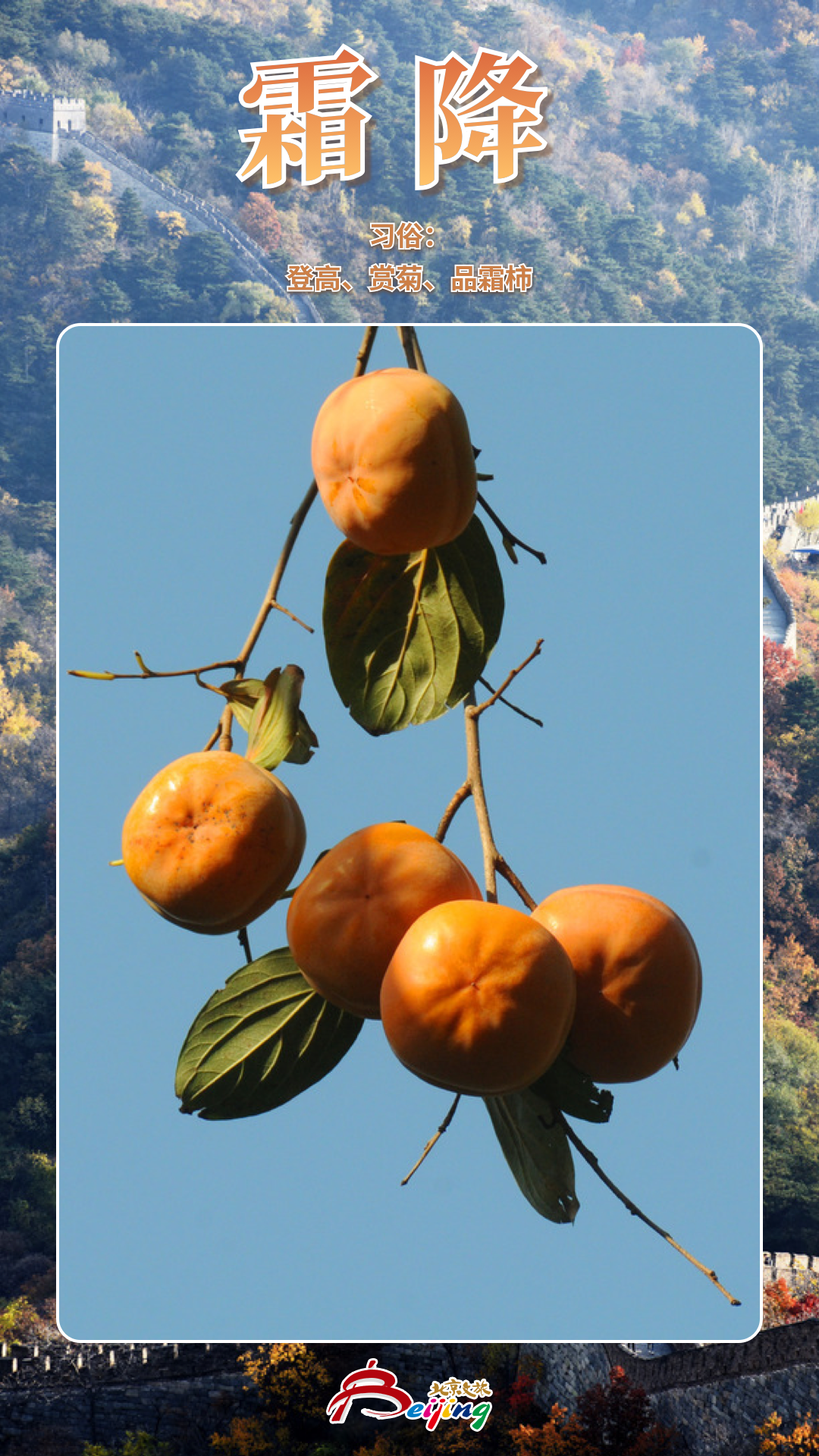 俗语有云:“霜降吃灯柿,不会流鼻涕。”民间认为霜降吃柿子,冬天就不会感冒流涕。事实上,由于柿子都是在霜降前后完全成熟,皮薄、肉多、味美,深受人们的喜爱,因而就形成霜降时节吃柿子的习俗。